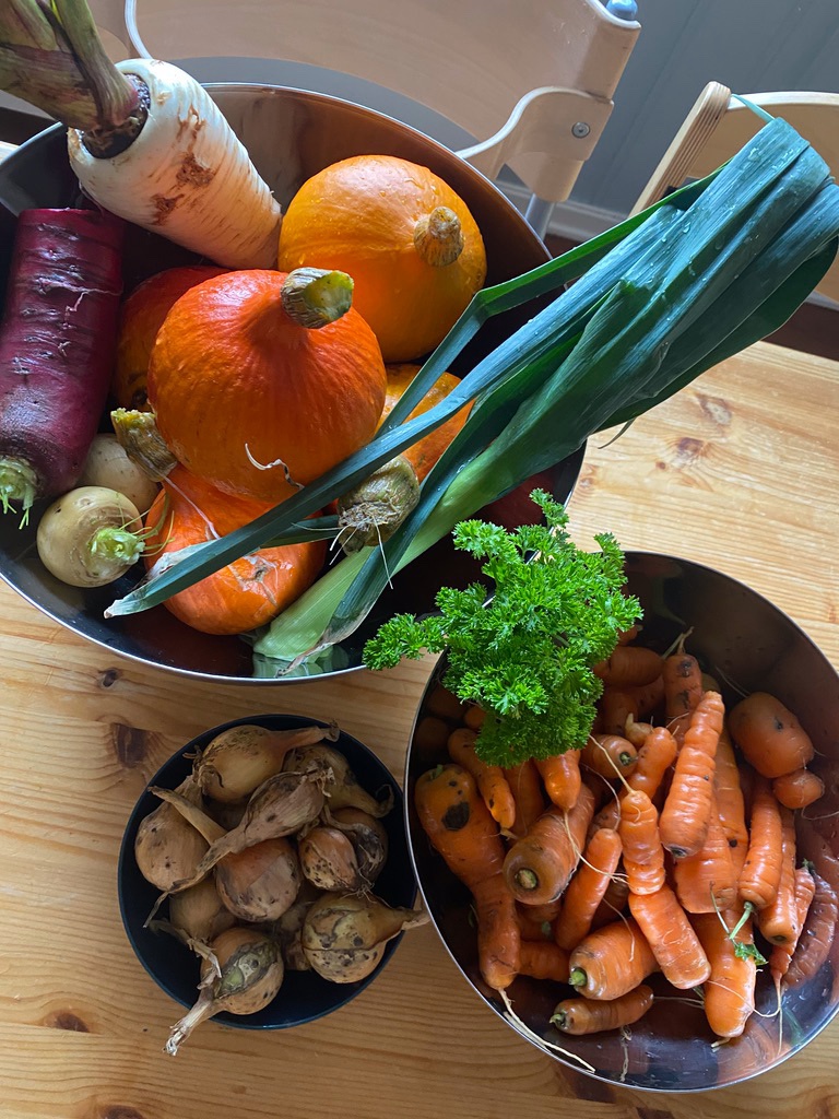 I barnehagen tilbereder vi all mat fra bunn. Vi tenker nøye gjennom hvordan maten er satt sammen. Vi har et variert kosthold med fokus på grove kornprodukter, grønnsaker, frukt, fisk, kjøtt og meieriprodukter. Vi mener det er viktig å bidra til at barna får gode vaner når det gjelder kosthold. Barnehagen er en arena hvor barna på en naturlig måte kan tilegne seg kunnskaper og gode holdninger når det gjelder, mat og måltider. Barnehagen tilbyr varm mat 2 dager i uken. Noen ganger lager vi også varm mat på tur. 2 -3 dager i uken er det brødmåltider med et variert utvalg pålegg og rå grønnsaker ved siden. Barna får også et mellommåltid hver dag bestående av frukt, grønnsaker og knekkebrød/brød.